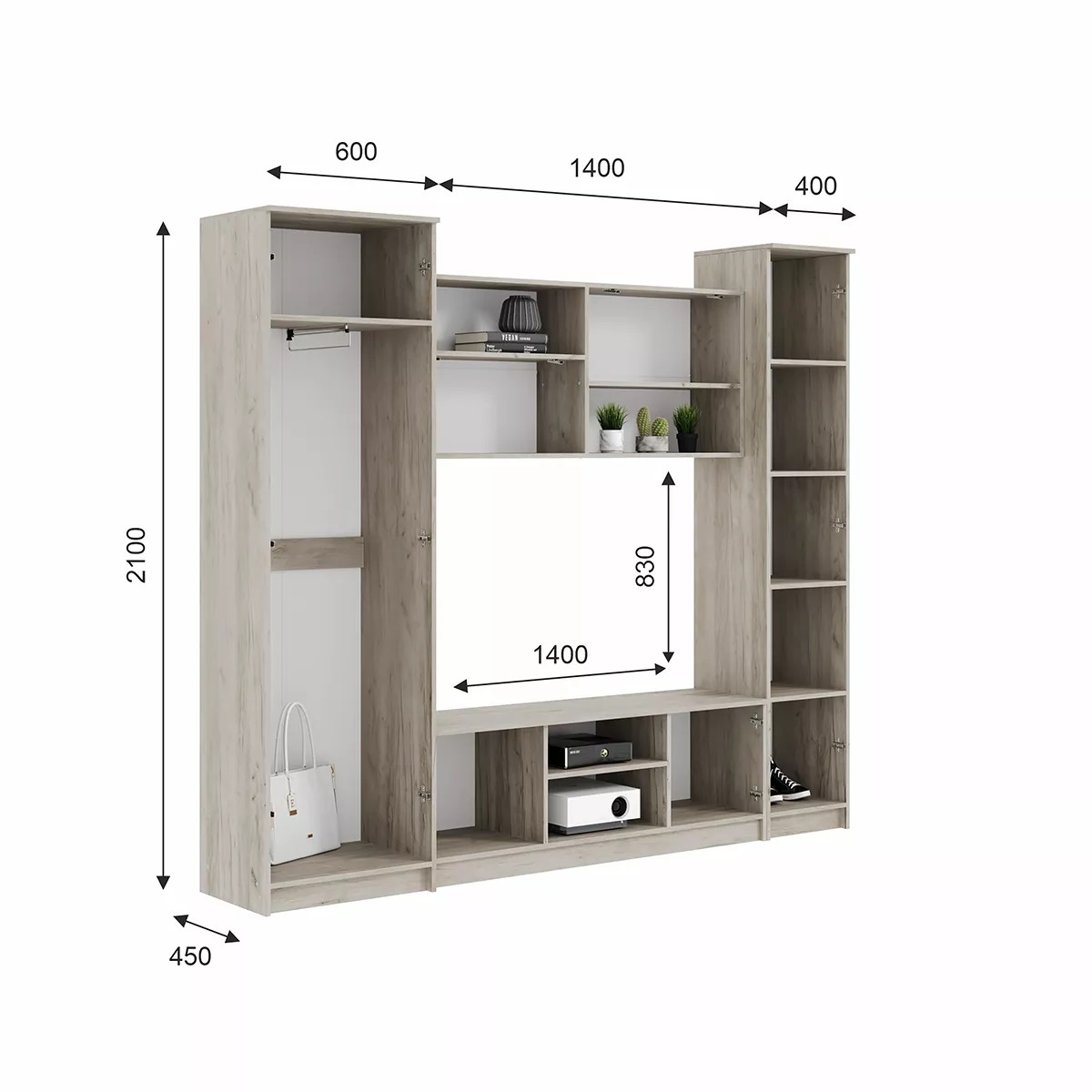 Ниша под ТВ: 1400*830 мм для моделей телевизоров с диагональю до 43"