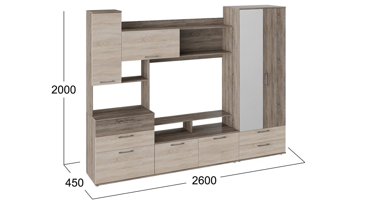 Размер ниши для ТВ-аппаратуры: 1144*716 мм