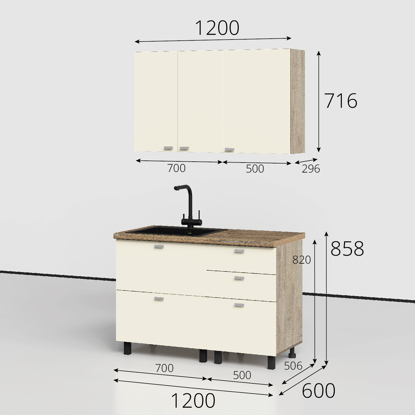 Этна-Алебастр Набор мебели для кухни (комплектация №4) 1200мм