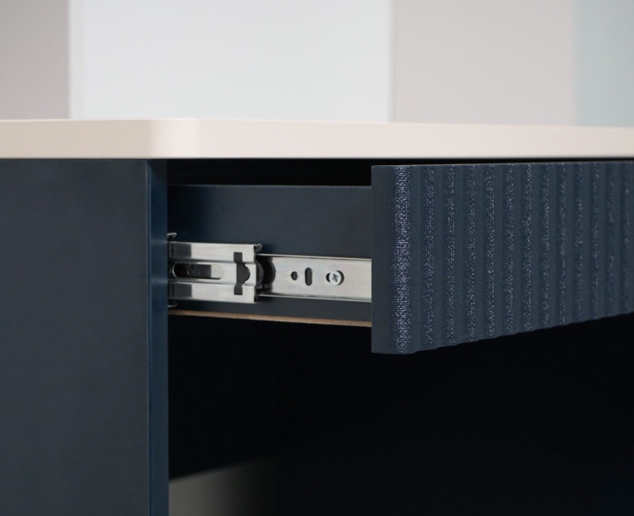 • Вместительные ящики комода оснащены системой плавного закрывания скрытого монтажа, благодаря чему модулем приятно и удобно пользоваться.
