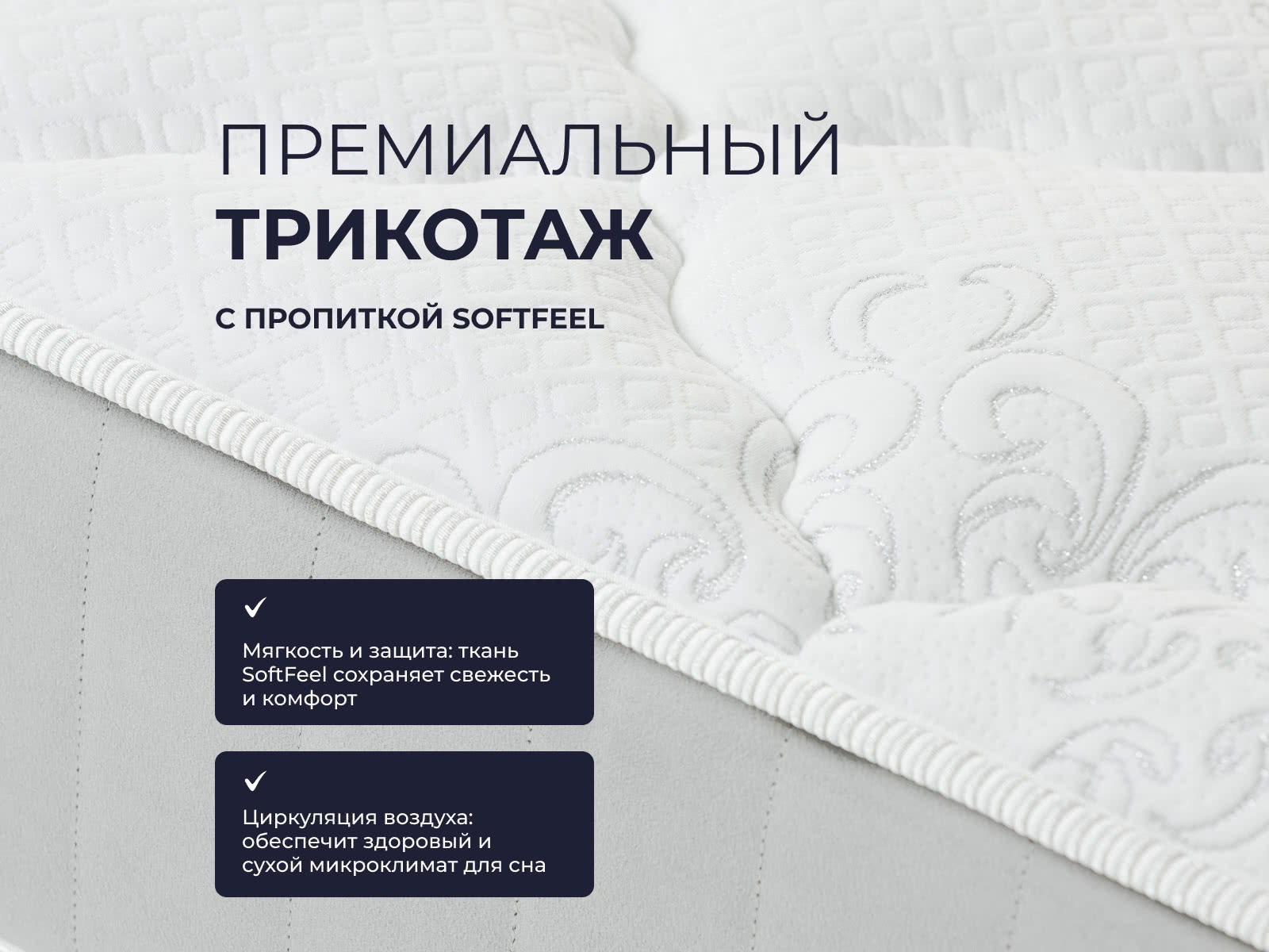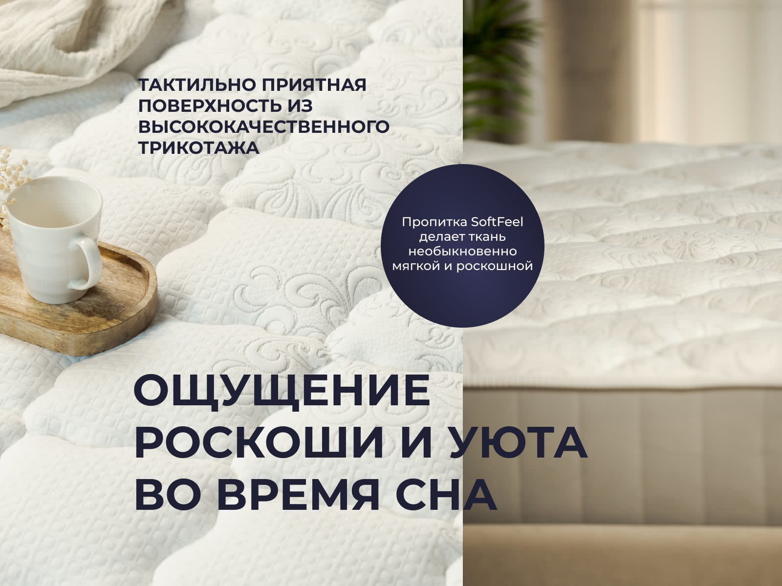 Чехол - из премиального трикотажа с пропиткой Soft Feel и системой комфортности Ultra Sense. Бурлет из велюра с густым бархатистым ворсом. Пропитка Soft Feel - сдерживает рост микроорганизмов, делает ткань необыкновенно мягкой и роскошной.