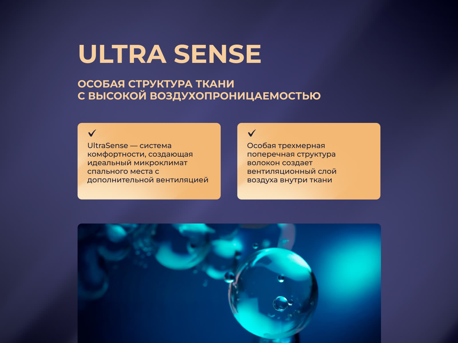 Cистема комфортности Ultra Sense обеспечивает дополнительную вентиляцию и идеальный микроклимат спального места.