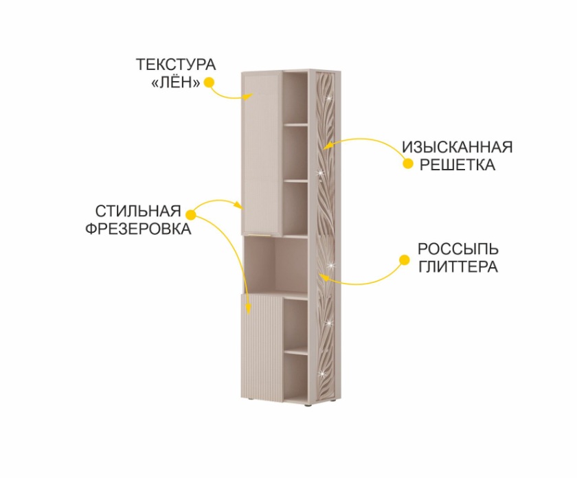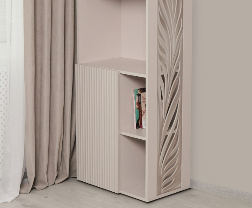 - Модуль обладает высокой функциональностью за счет большого количества открытых и закрытых полочек.