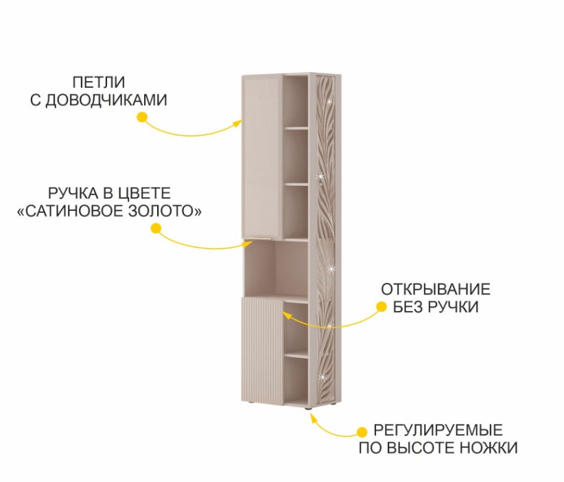 - Регулируемые по высоте ножки позволяют при установке шкафа компенсировать возможные неровности пола.