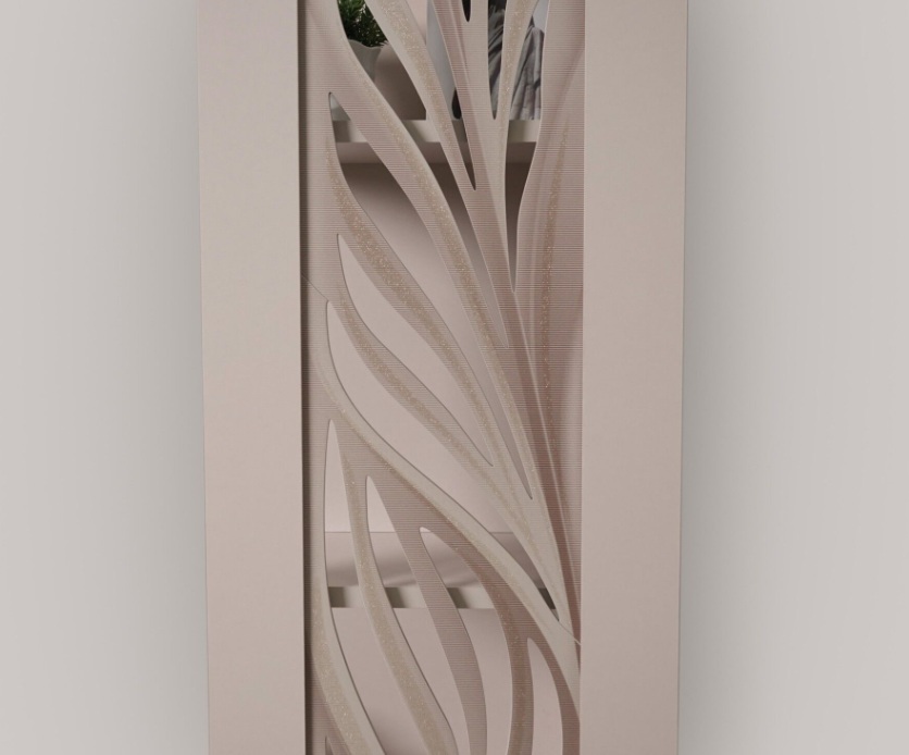 - Изысканная декоративная решетка из МДФ с ажурным рисунком и легкой россыпью глиттера визуально делает конструкцию изделия более легкой и воздушной.