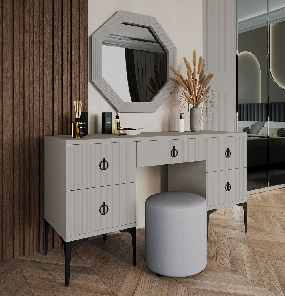 Туалетный стол "Стелла" придает интерьеру особый современный шарм. Просторная столешница и удобные выдвижные ящики, оснащенные доводчиками, обеспечивают максимальную функциональность и комфорт в вашей спальне. Такой столик можно использовать как косметический в паре с зеркалом, так и как рабочий стол для студента или школьника.