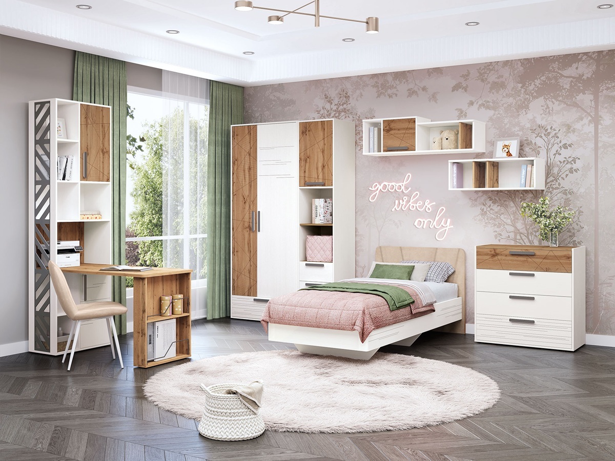 - Благодаря эффекту парящей кровати интерьер детской выглядит стильно и легко.