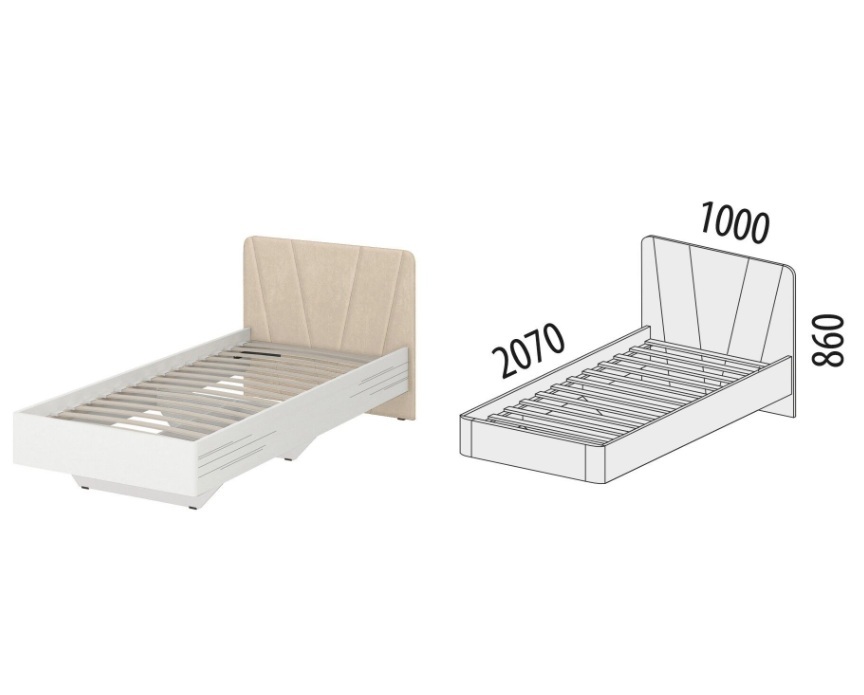 - Кровать укомплектована ортопедическим основанием, которое помогает телу принимать правильное положение во время сна и отдыха. Также оно позволяет матрасу «дышать», оберегает его от деформации и значительно продлевает срок службы.
