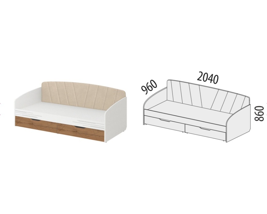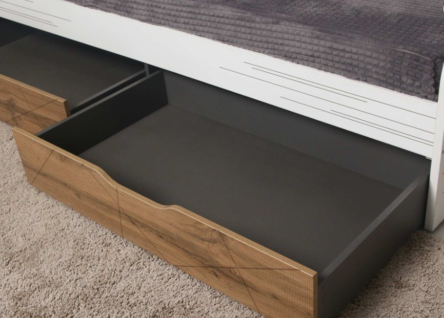 - Под кроватью установлены два вместительных выдвижных ящика для удобного хранения вещей.