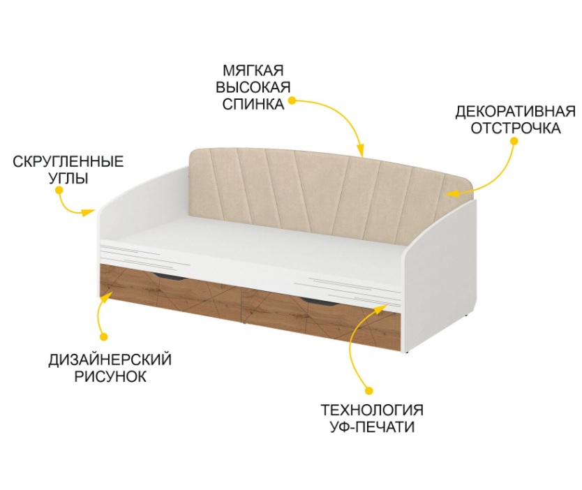 - Мягкая высокая спинка кровати создает дополнительный комфорт и защищает от холодной стены.