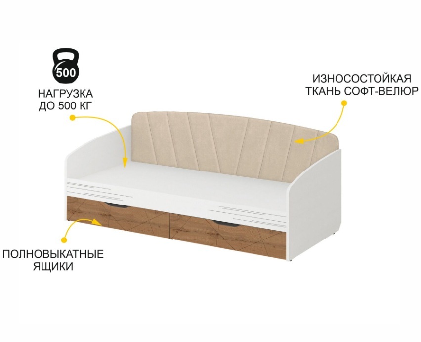 - Конструкция кровати выдерживает максимальную равномерно распределенную нагрузку до 500 кг.