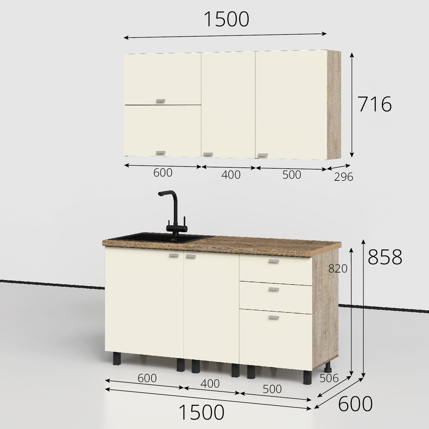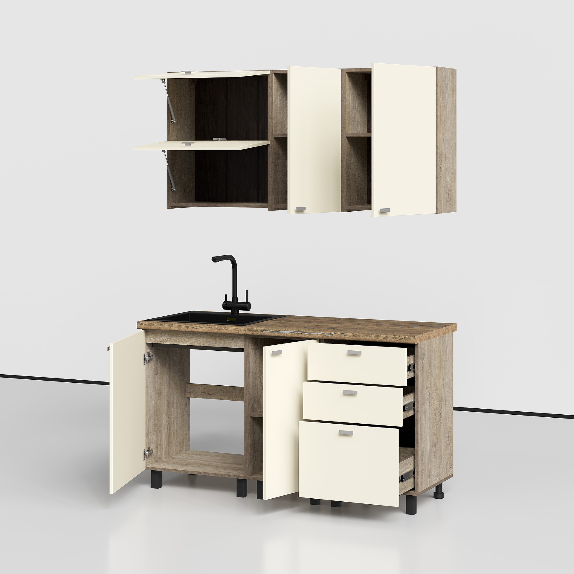Этна-Алебастр Набор мебели для кухни (комплектация №8) 1500мм