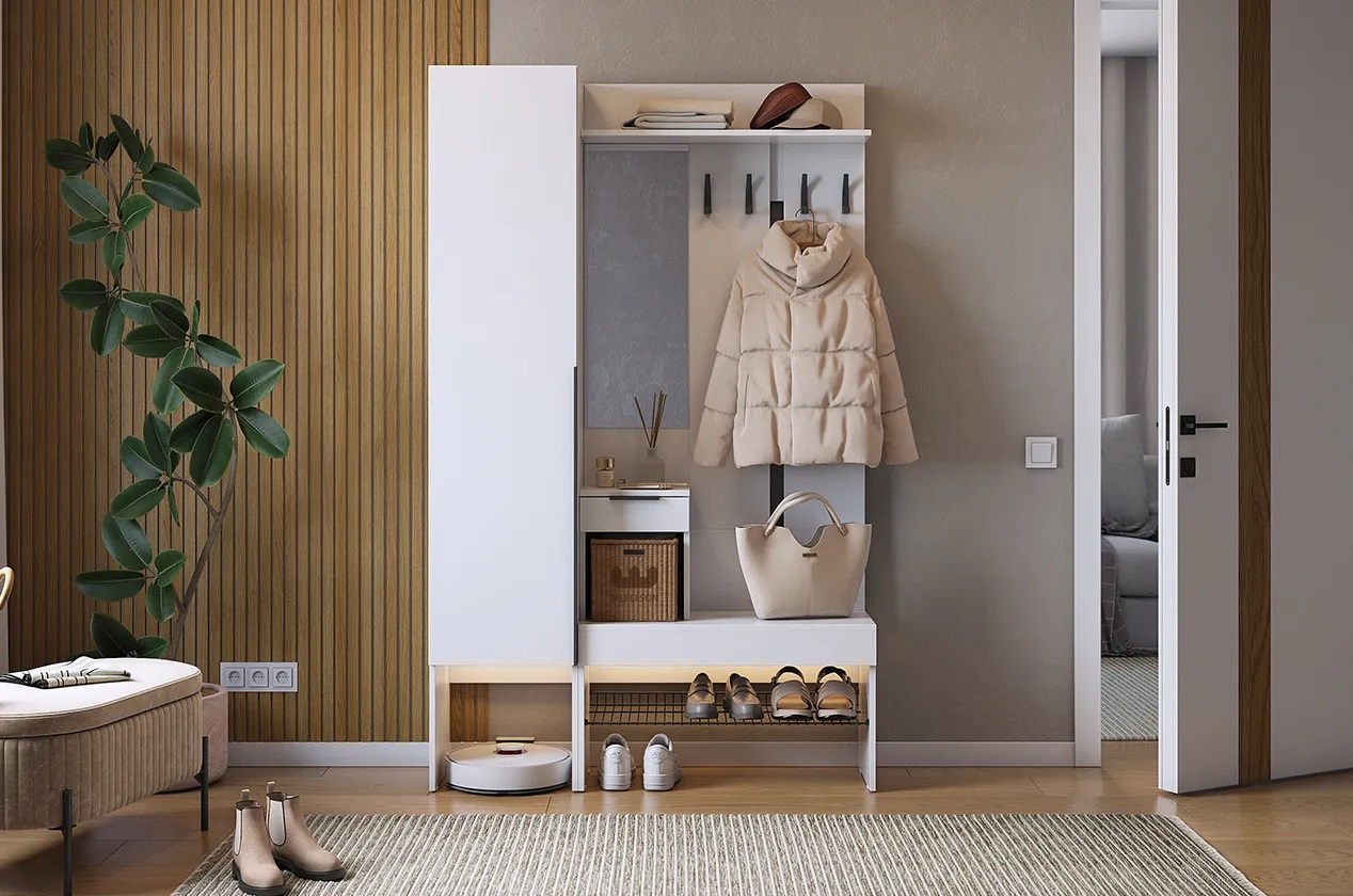 В стоимость прихожей входят только те позиции, которые указаны в комплектации. Подсветка для шкафа и прихожей приобретается отдельно.