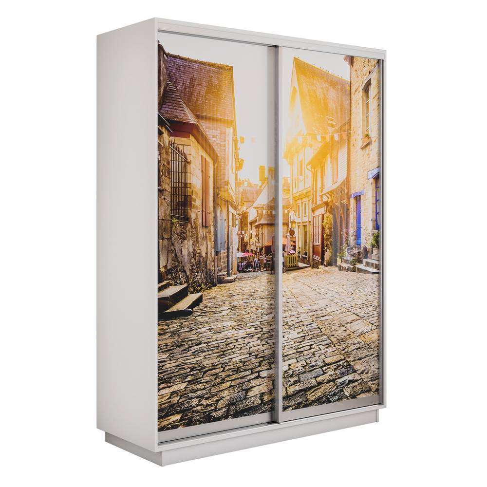 Шкаф-купе двухдверный ЭКСПРЕСС ФОТО ДУО (рисунок - Улица) в трех возможных длинах: 1200 мм, 1400 мм, 1600 мм, в двух вариантах глубины: 440 мм и 600 мм, и двух вариантах высоты: 2200 мм и 2400 мм