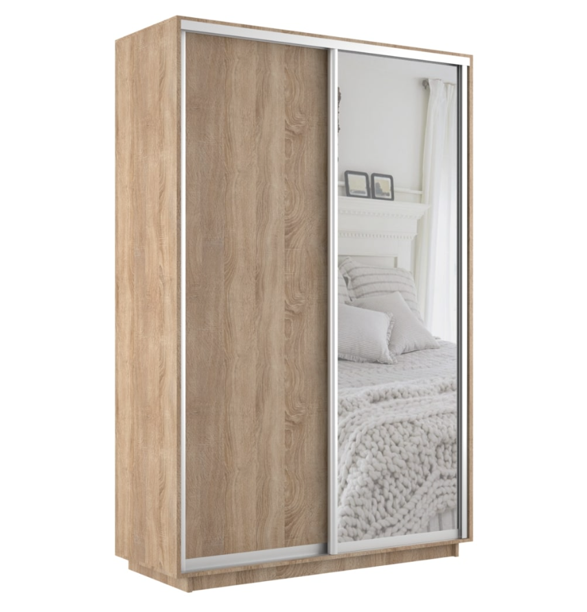 Ударостойкая кромка ПВХ защищает торцы шкафа от сколов и повреждений. Алюминиевый профиль обеспечивает плавный ход дверей и продлевает срок службы шкафа. Материал задней стенки выполнен из плиты HDF, которая не прогнется со временем. Отдельный цоколь позволяет поставить шкаф вплотную к стене.