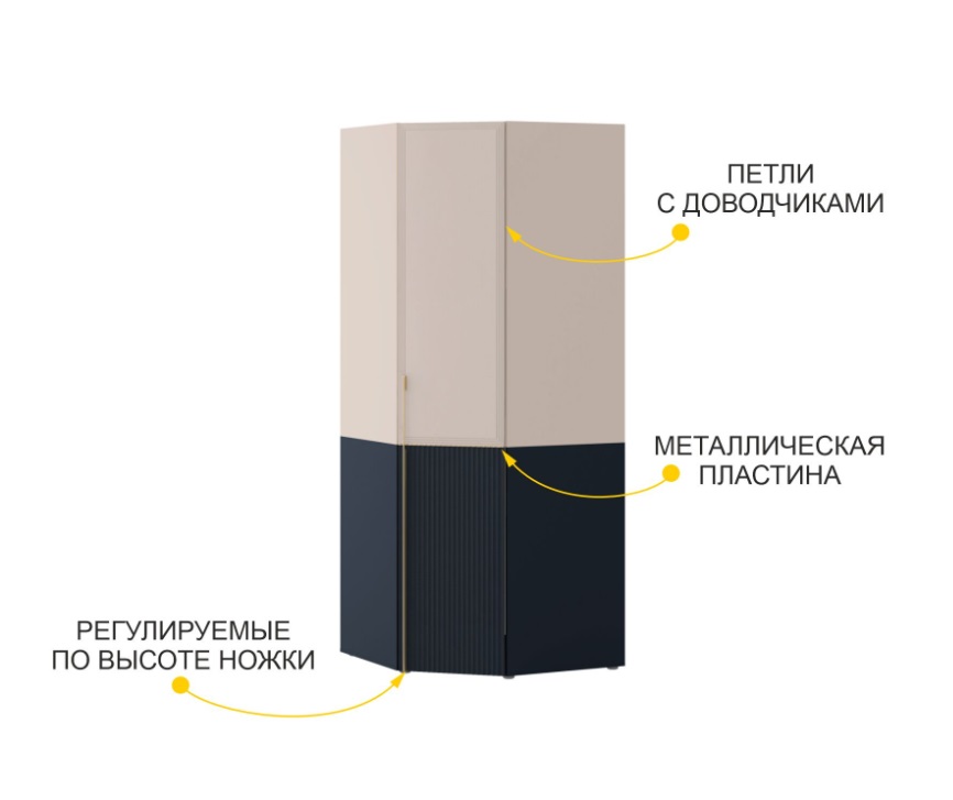 • Дверцы оснащены петлями с доводчиками, которые обеспечивают плавное и бесшумное закрывание.