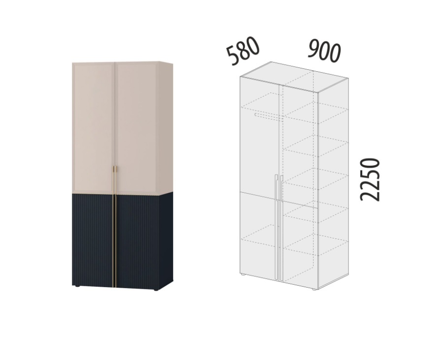 Флоренция-905 (DaVita) 905.13 Шкаф двухдверный с полками и штангой