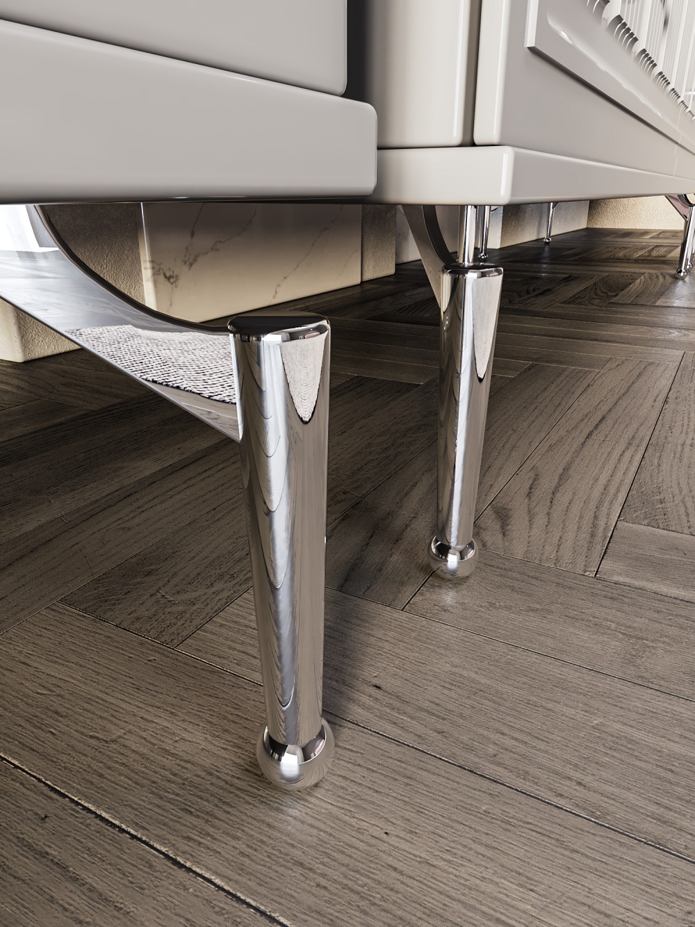 Фасад: МДФ с фрезеровкой и вставкой из пластика под латунь/хром + стеклянная дверь с фрезеровкой МДФ;