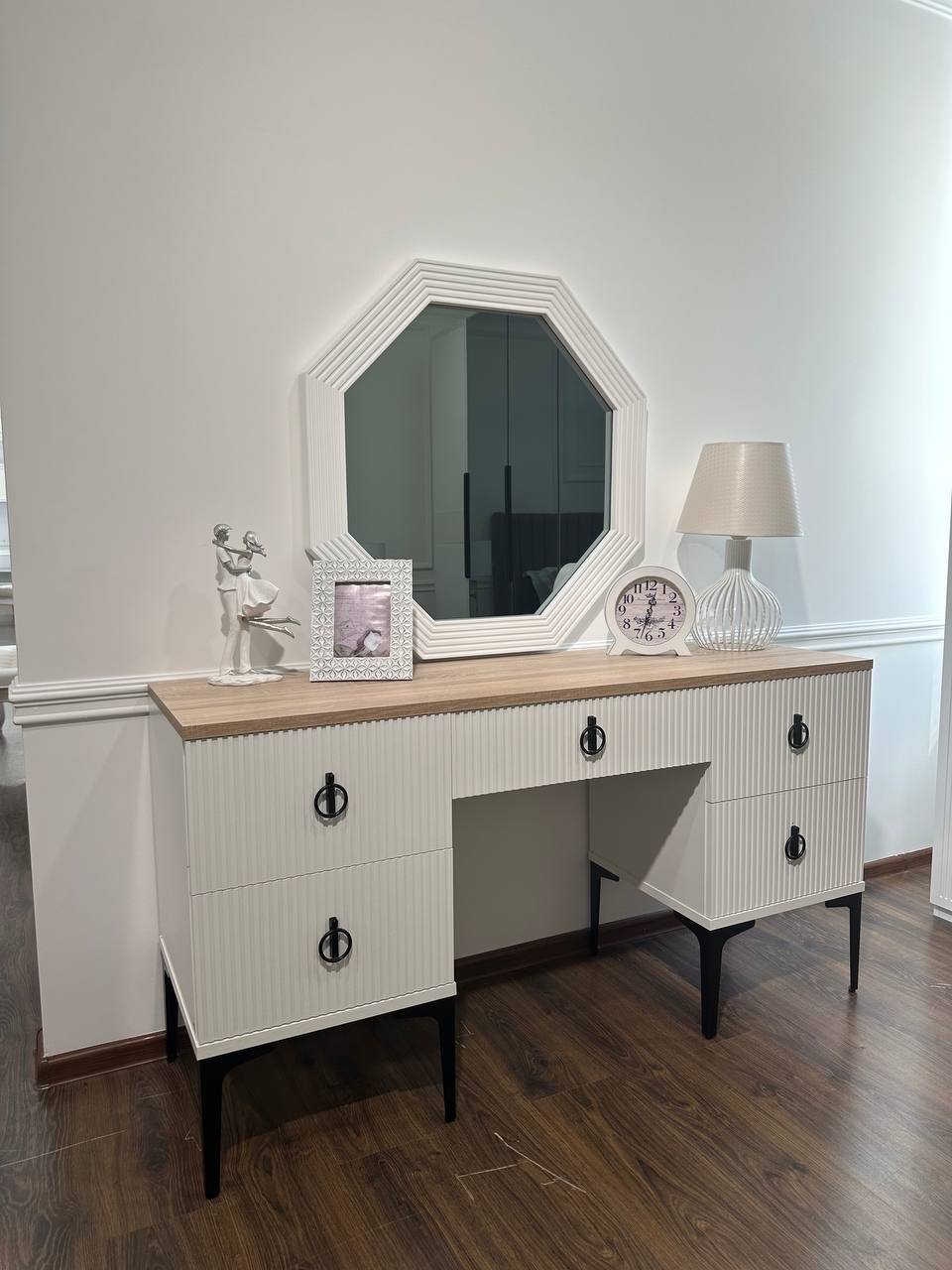 Туалетный стол "Стелла" придает интерьеру особый современный шарм. Просторная столешница и удобные выдвижные ящики, оснащенные доводчиками, обеспечивают максимальную функциональность и комфорт в вашей спальне. Такой столик можно использовать как косметический в паре с зеркалом, так и как рабочий стол для студента или школьника.