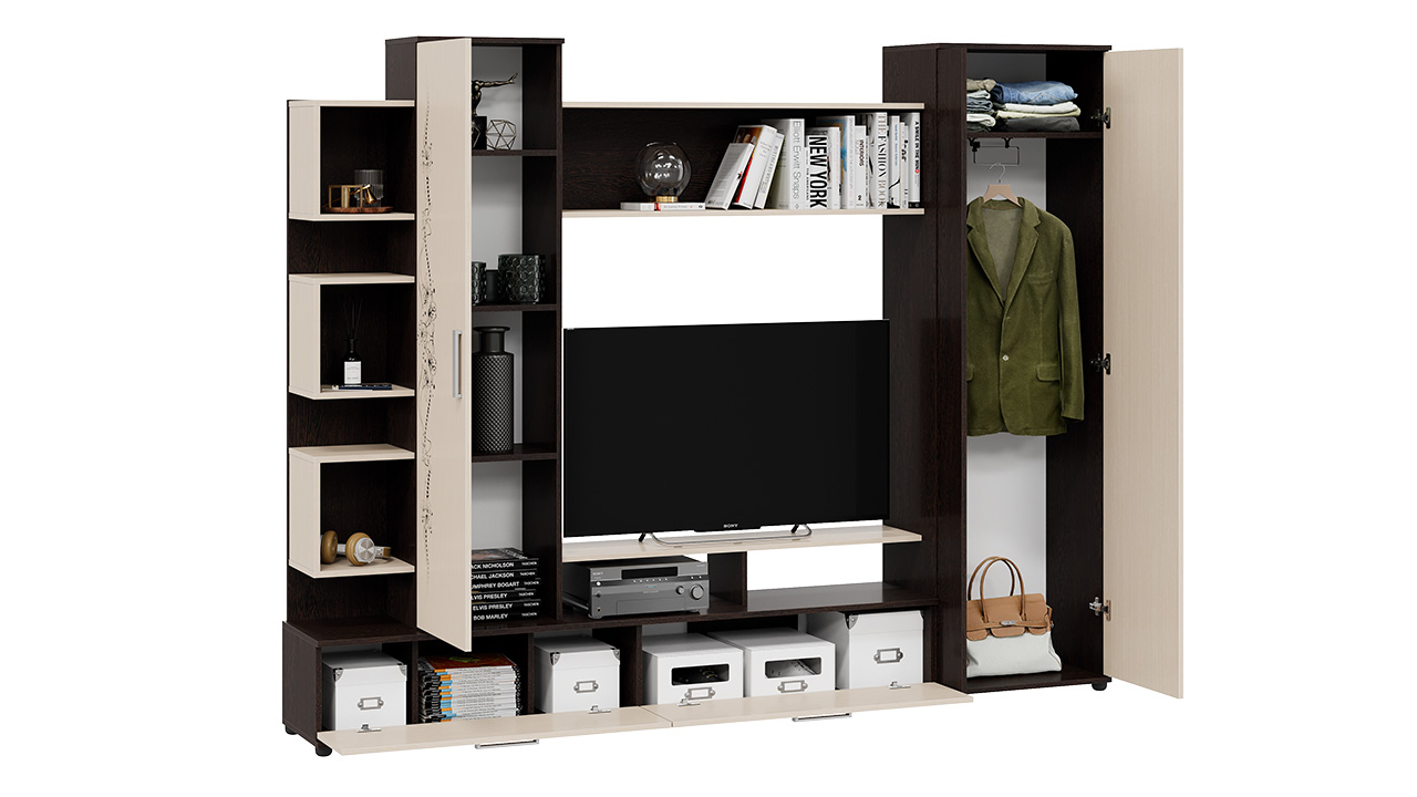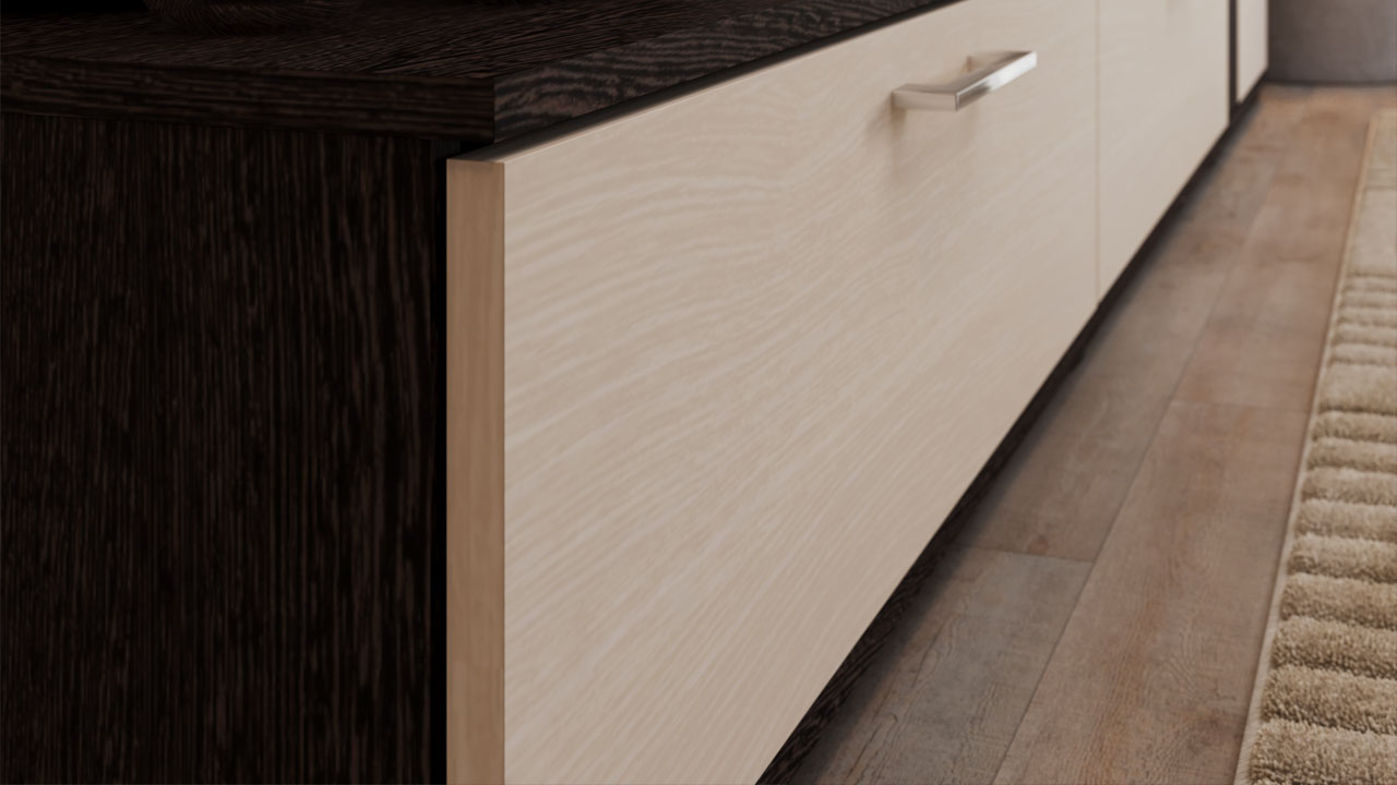 Гармоничное сочетание темной текстуры (Венге Цаво) и нежной молочной (Дуб Молочный)