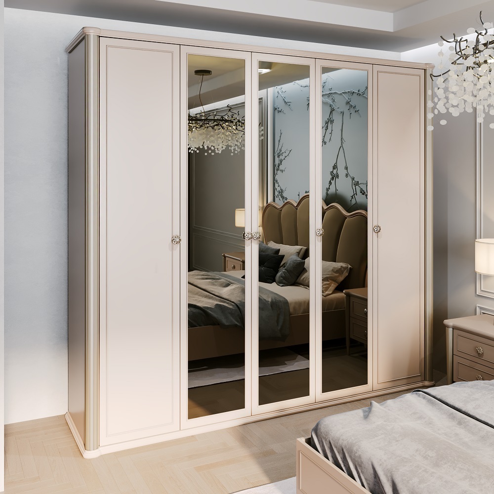 Изящные линии и декоративные элементы, такие как фрезеровка и патина шампань, придают мебели особый шарм, что придаёт ей утончённость и аристократический облик, становясь настоящим украшением вашего дома.