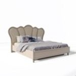Изголовье кровати выполнено в форме, напоминающей бутон цветка. Оно имеет мягкие, плавные линии и округлые формы, что придает ему элегантный и романтичный вид.
